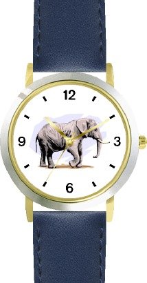African Elephant African Animal - WATCHBUDDY® DELUXE TWO-TONE THEME WATCH - Arabic Numbers - Blue Leather Strap-Women's Size-Small Review