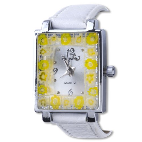 Stylish, trendy and personalized, the Pugster Square White Band Yellow Flower Encircled Murano Millefiori watch makes a great accent to both casual and business wear. Featuring a round graceful case and bright color band, this Pugster Square White Band Yellow Flower Encircled Murano Millefiori watch brings you both unmatchable punctuality and elegant appearance. The bright watch is not only a tool telling you the accurate time, but also a perfect fashionable ornament to show your unique taste and style. Every Square White Band Yellow Flower Encircled Murano Millefiori watch is elaborated designed by creative and avant-garde designers and crafted out of high quality materials. Crafted and authenticated by Pugster Inc, the Square White Band Yellow Flower Encircled Murano Millefiori Watch is available for both retail and wholesale purchase through our store.
