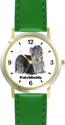 Yorkshire Terrier (SC) Dog - WATCHBUDDY® CLASSIC DELUXE TWO-TONE THEME WATCH - Arabic Numbers-Green Leather Strap-Women's Size-Small Review