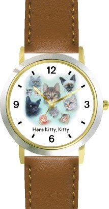 Collage of Kittens Cat - JP - WATCHBUDDY® DELUXE TWO-TONE THEME WATCH - Arabic Numbers - Brown Leather Strap-Women's Size-Small Review