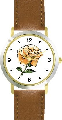 Peach Colored Rose - Flower - WATCHBUDDY® DELUXE TWO-TONE THEME WATCH - Arabic Numbers - Brown Leather Strap-Women's Size-Small Review
