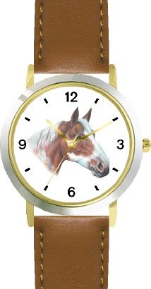 Chestnut and White Paint or Pinto Horse - JP - Horse - WATCHBUDDY® DELUXE TWO-TONE THEME WATCH - Arabic Numbers - Brown Leather Strap-Women's Size-Small Review