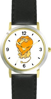 Lion Cartoon Cat - WATCHBUDDY® DELUXE TWO-TONE THEME WATCH - Arabic Numbers - Black Leather Strap-Women's Size-Small Review