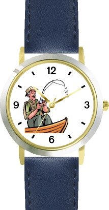Old Fisherman or Man in Boat Fishing - WATCHBUDDY® DELUXE TWO-TONE THEME WATCH - Arabic Numbers - Blue Leather Strap-Women's Size-Small Review