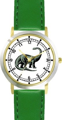 Brontosaurus - Green Dinosaur Animal - WATCHBUDDY® DELUXE TWO-TONE THEME WATCH - Arabic Numbers - Green Leather Strap-Women's Size-Small Review