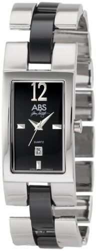 A vision of style and sophistication, we think you are going to be an instant fan of the ABS Allen Schwartz Women's 5012 Ceramique Collection Silver-Tone Band Watch This exceptional timepiece begins with a square 23mm silver-toned brass case with a fixed silver-toned brass bezel and a textured crown. These elements surround a bold black dial, which is protected by a hardened mineral crystal and features silver-toned index and Arabic numeral hour markers and silver-toned hands powered by Japanese quartz movement. The dial also features a date display window at the 6 'o clock position. A silver-toned brass link bracelet with black ceramic link connectors straps this watch to the wrist, while a jewelry clasp ensures its secure placement. Finally, this watch boasts water resistance up to 99 feet (30 meters). Truly a must-have for your watch collection, pick this beauty up today.
