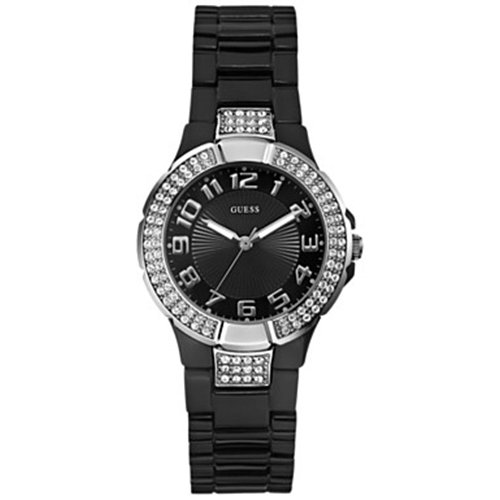 A striking contrast of stark black and sparkling crystals illuminates this watch to make a bold, confident statement. ? Analog function ? Watch dimensions in mm: 36/36/11 ? Black, silver-tone and crystal case ? Black dial ? Black polycarbonate and silver-tone bracelet ? Water resistant up to: 100 m/330 ft ? 10 Year Limited Warranty Women's Accessories > Watches > Guess Watches